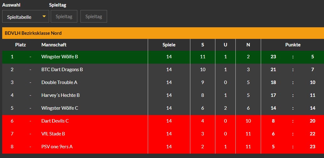 Am letzten Spieltag gelang ein 9:3 Heimsieg gegen PSV one 9ers A aus Stade, so daß man mit 2 Punkten Vorsprung die Saison als Tabellenerster beendet. Hier die Abschlusstabelle:
