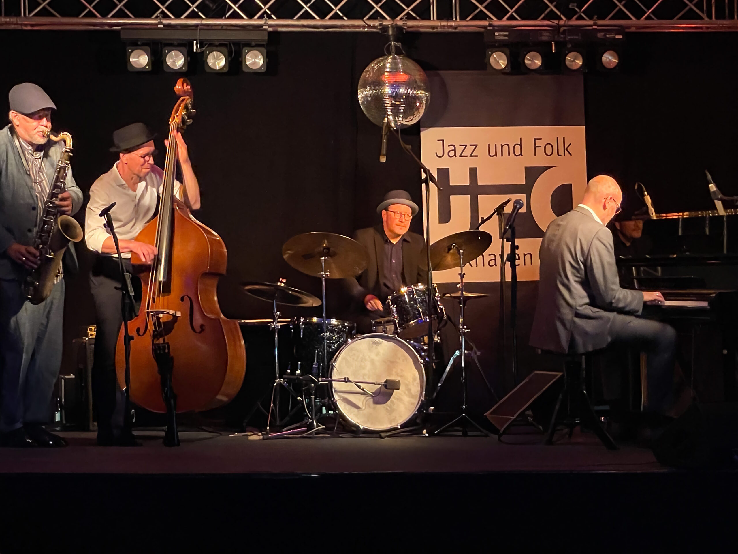 Cuxavhen. Ein früher Herbstabend, ein voller Saal und Musik, die vom ersten Moment an für gute Stimmung sorgte: Pianist Frank Muschalle gastierte mit seinem Trio (Dirk Engelmeyer an Schlagzeug und Gesang, Matthias Klüter am Kontrabass) und hatte mit Stephan Holstein einen besonderen Gast dabei, der mit Saxofon, Klarinette und Bassklarinette für viel Abwechslung im Klangbild sorgte.