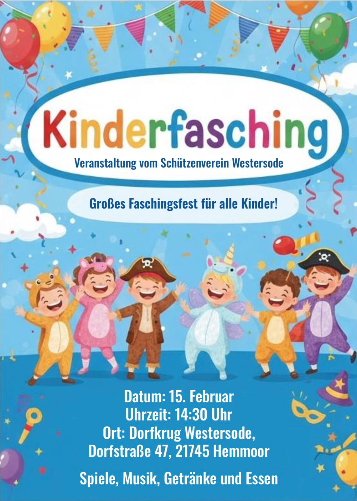 Hemmoor. Der SV Westersode von 1900 e.V. veranstaltet am 15.02.26 ab 14:30 Uhr auf dem Festsaal Dorfkrug erstmalig ein Kinderfaschingsfest. …