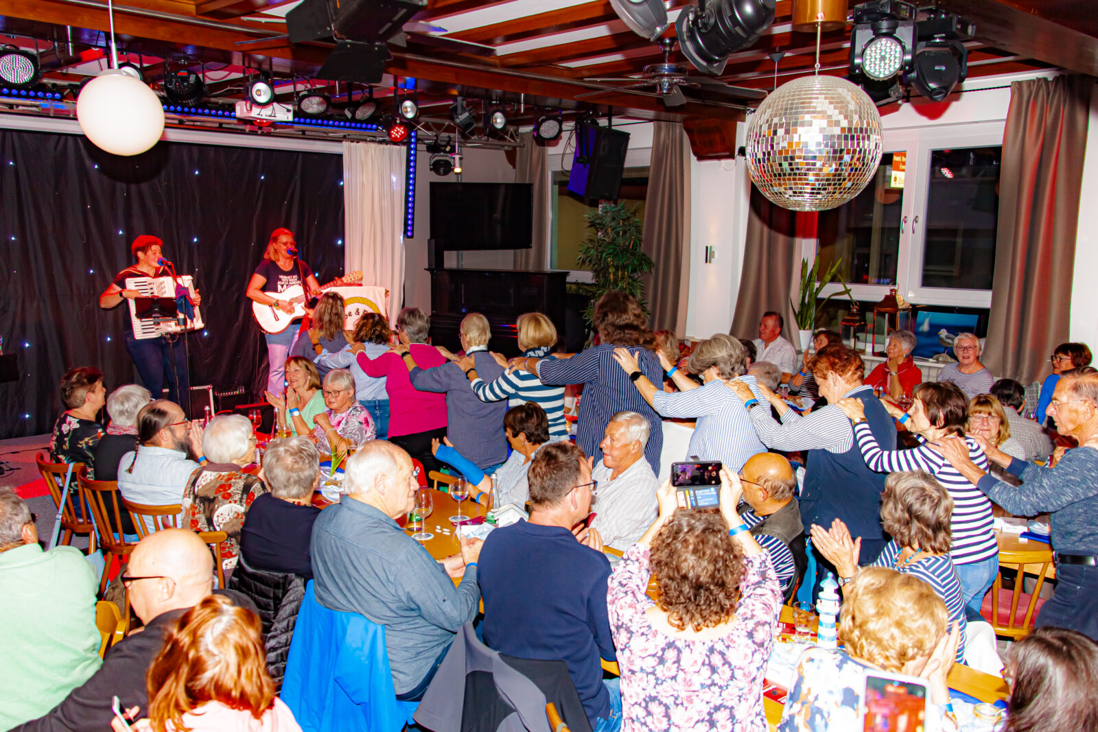 Es wurde geschunkelt, gelacht, gemeinsam gesungen und auch die Polonaise durfte an diesem Abend nicht fehlen. Die Musikerinnen Ulrike Staufenbiel und Britta Quaiser alias „Ebbe & Flut“ verstehen es, ihr Publikum zu fesseln und eine Atmosphäre zu schaffen, die den Alltag vergessen lässt. Ihre Musik, unterstützt von Tontechniker Jürgen Dembski, transportierte die Gäste direkt an die Nordseeküste und so wurde dieser Abend zu einem unvergesslichen Erlebnis. Die von der Nordseeheilbad Cuxhaven GmbH mitgegebenen Infoflyer und Souvenirs fanden in der Pause ebenso reißenden Absatz wie die CDs des Duos.