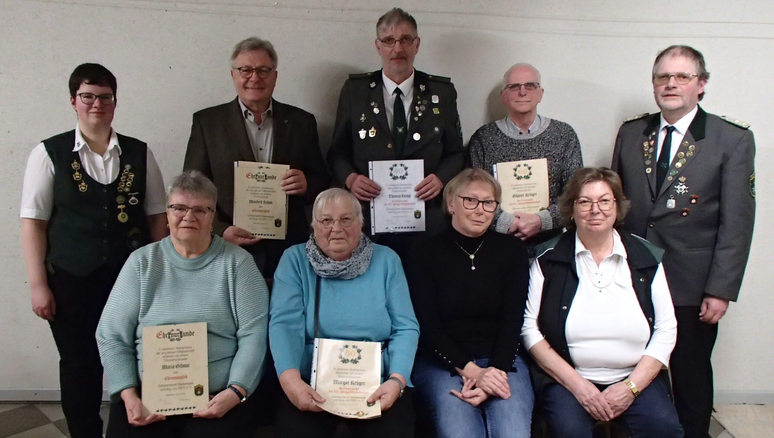 Schießsportleiterin Erika Wisch verlas die Namen der amtierenden Königsfamilie sowie die Meister von Eröffnungs- und Abschlussschießen. Zudem nannte sie die Platzierungen unserer Königsfamilienmitglieder beim Kreiskaiserschießen und die Teilnahme beim Pokalschießen in Neuenwalde (1. Platz). Kassenwart Sven Krüger erläuterte den Kassenstand und die Mitgliederzusammensetzung. Bei den Ehrungen gab es Urkunden und Ehrennadeln für langjährige Vereinsmitgliedschaft: für 25 Jahre: Sandra Vollmers, für 40 Jahre: Gabriele Butzke, Harald Görse, Petra Kessler, Thomas Kropp und Petra Lohse, für 50 Jahre: Monika Härtel, Margot Krüger, Helmut Lohse und Manfred Schult, für 60 Jahre: Günter Krüger, Angelika Prietz und Christa Riebe. Zudem wurden Maria Gilmut, Monika Härtel, Helmut Lohse und Manfred Schult zu Ehrenmitgliedern ernannt. Im Verlauf des Abends wurde eine Beitragsanpassung beschlossen und die Bemühungen um Nachhaltigkeit sollen fortgesetzt werden.Für das kommende Jahr sind folgende Termine vorgesehen: Eröffnungsschießen am 26. April; Schützenwoche ab 20. Juli, insbesondere 25. Juli Schützenfest mit Zeltparty und 26. Juli Schützenfest mit Umzug; Abschlussschießen mit Grillen am 20. September und Weihnachtsfeier am 28. November.
