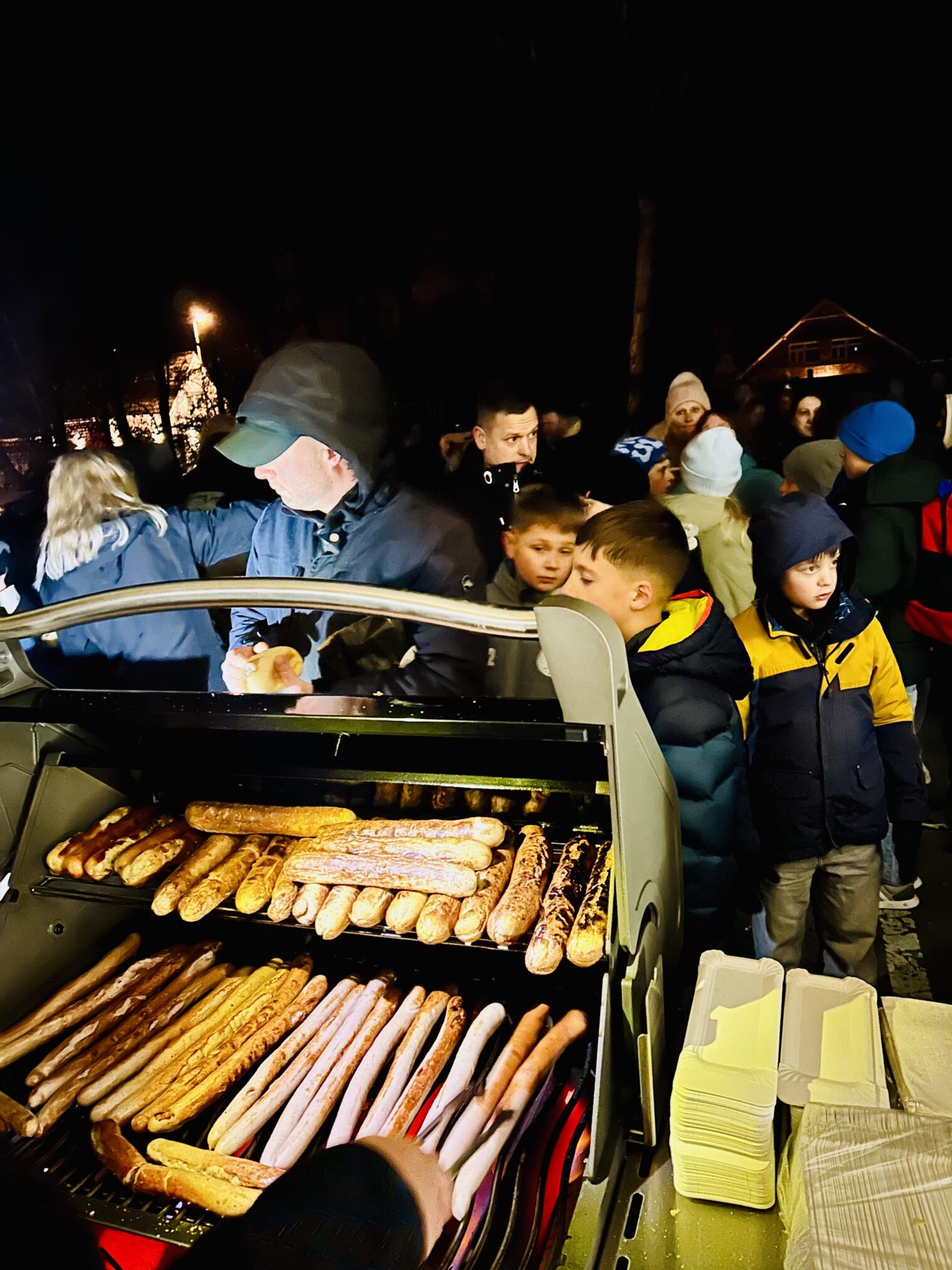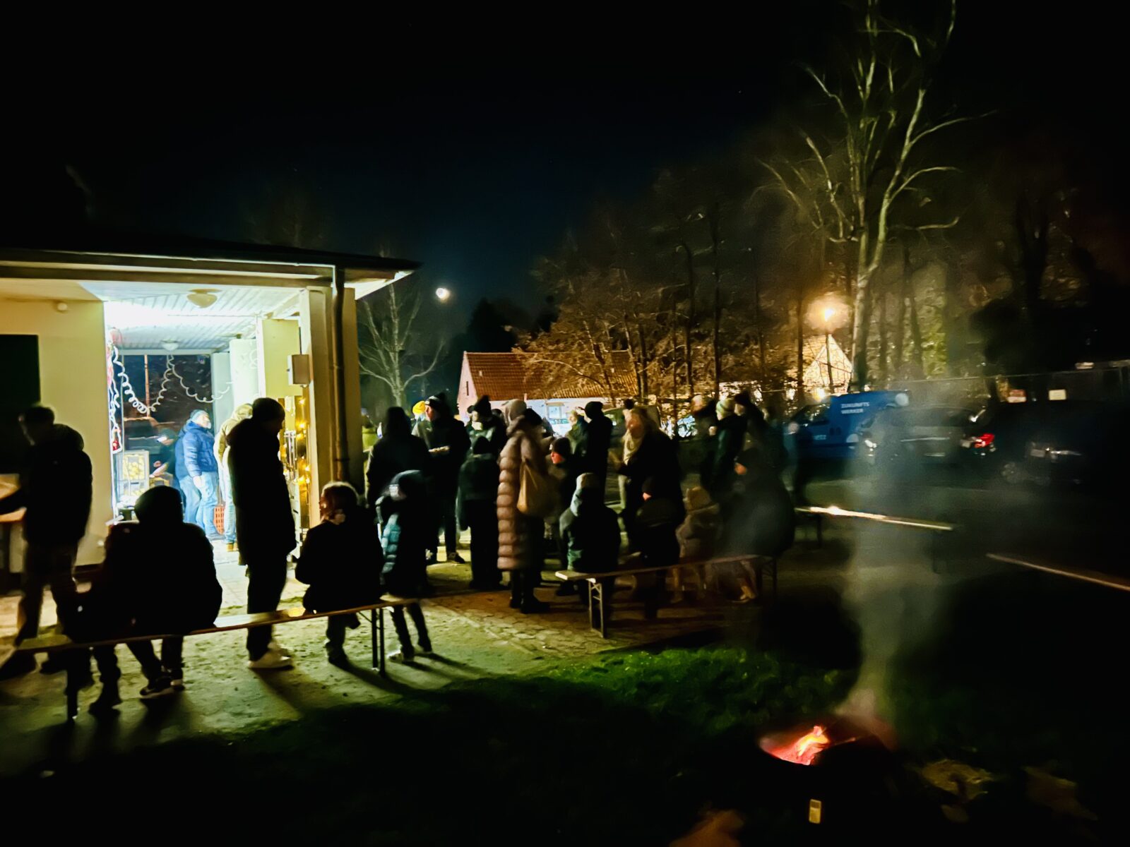 Mehrere Hundert große und kleine Menschen bei der Gewinnausgabe der JFV-Adventstütchen auf dem Strichwegsportplatz!