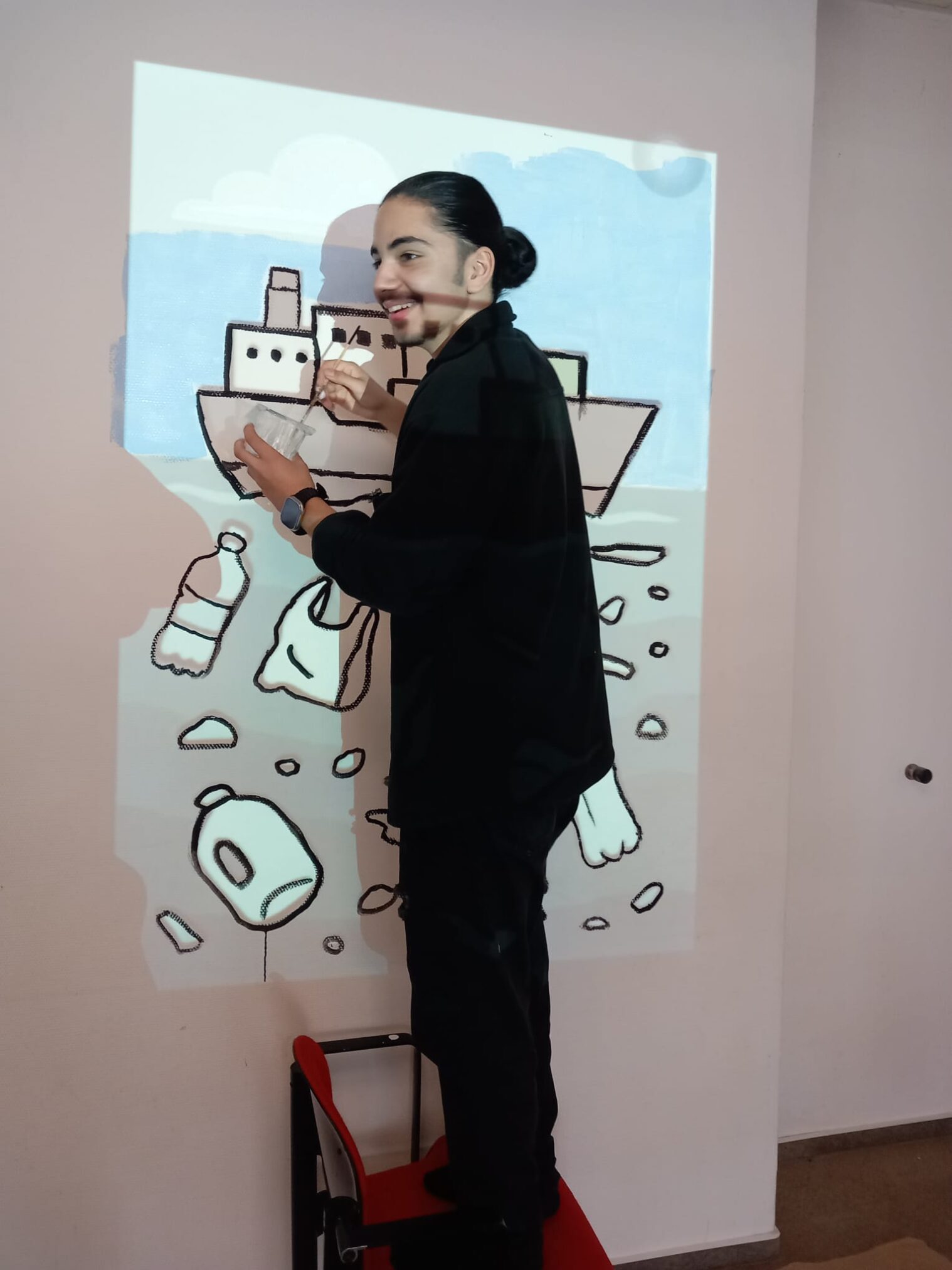 „Unser Ziel ist es, die Jugendlichen nicht nur über die Gefahren von Meeresmüll zu informieren, sondern sie aktiv in kreative Prozesse einzubinden – so bleibt das Thema im Kopf und im Herzen“, betonen Robin und Tchepets. Finanziert wird das Projekt durch den Landkreis Cuxhaven, die Aktion Kinderbetreuung e.V., das Paritätische Jugendwerk, Wir in Süderwisch e.V. und die Stadtsparkasse Cuxhaven. Das Künstlerhaus stellt für die Künstler kostenfrei eine Unterbringung in den eigenen Räumlichkeiten. Bildunterschrift: Mahan Halakouei ist ein Teilnehmender am kreativen Umwelt-Workshop des Paritätischen Cuxhaven.