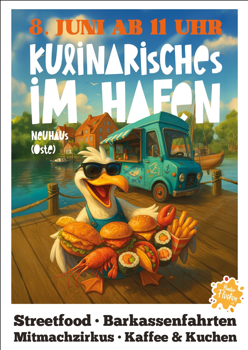 Neuhaus. Nachdem bereits in den letzten Jahren zahlreiche Besucher den Weg in den historischen Hafen Neuhaus gefunden hatten, lädt der Bürgerverein „Bunter Flecken e. V.“ auch in diesem Jahr wieder dazu ein, sich durch ein breites Angebot kulinarischer Highlights in entspannter Hafenatmosphäre zu probieren. Los geht es am Sonntag, dem 08.06.2025, ab 11 Uhr. Von Klassikern wie Fischbrötchen, Räucheraal, Champignon-Pfanne, neapolitanische Pizza und Bruschetta wird es ein geschmacklich vielfältiges Angebot internationaler Küche geben. Zu Gast wird auch der Otterndorfer Krabben-Kutter (Jörg Wendt) mit fangfrischen Nordseekrabben sein. Doch nicht nur kulinarisch dürfen sich die Gäste auf eine Rundfahrt einstellen. Von ca. 11:00 – 14:00 Uhr lädt die historische Hafenbarkasse „Bärbel“ zu kurzen Törns auf die Oste ein. Im Anschluss kann die Reise am reichhaltigen Kuchen- & Torten-Buffet fortgesetzt werden. Als Durstlöscher und für Kenner hausgemachter Liköre und Schnäpse steht das Neuhäuser Traditionsunternehmen ULEX parat. Für jeden Geschmack ist etwas dabei! Der Bunte Flecken e. V. heißt Euch im historischen Hafen herzlich willkommen!