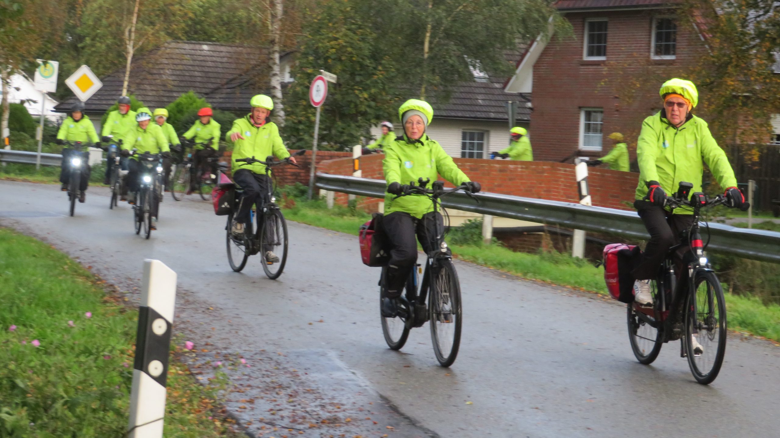Mit der Abradeltour am Sonntag, 15. Oktober, endete die Saison des Radsportvereins Hemmoor. Und dabei sah es wenige Tage zuvor gar nicht so gut aus: Dauerregen, Sturm und winterliche Kälte hatte der Wetterbericht vorausgesagt. Das schreckte so einige Teilnehmer ab und veranlasste sie, vom Rad auf das Auto umzusteigen. Doch ein ´harter Kern´ von 12 Radlern wollte es wissen und erschien pünktlich um 13 Uhr abfahrbereit am Güterschuppen. Und sie wurden belohnt: der Himmel klarte auf, die Sonne zeigte sich, vom Wind war nicht viel zu spüren und gegen die Kälte halfen Pulli, Jacke und Handschuh. – Der erste Stopp, das Heimatmuseum in Hollen, war vorab nicht angekündigt, und so waren alle ein wenig überrascht, was es dort wohl zu sehen geben würde. Michael Schwieger erwartete die Gruppe bereits. Er hat das Museum in jahrelanger Arbeit aufgebaut und eingerichtet und für diesen Tag sogar extra eingeheizt! Mit großem Engagement berichtete er von einzelnen Fundstücken auf Dachböden, Kellern und Archiven, und auch von seinem nächsten Projekt, dem Brunnenbau mit Bezug auf den Namensursprung der Gemeinde Hollen. – Bis zum Ziel der Abradeltour war es nicht mehr weit: im Iseler Hof war der Kaffeetisch bereits perfekt vorbereitet. Der Service klappte tadellos: Torten und Blechkuchen standen zur Auswahl und wurden flott serviert. Und wer es schaffte, für den gab´s noch Nachschlag. – Ab hier trennten sich die Wege von Autofahrer und Radler wieder. Während die Autoangereisten die direkte Heimfahrt antraten, erwartete die Radler noch kleiner Abschiedstrunk: Beim letzten Stopp in Bornberg standen ein paar Sektflaschen bereit – natürlich alkoholfrei – um auf das Ende dieser Saison stilgerecht anzustoßen – ein gelungener Abschluss – gute Stimmung – und ein wenig Vorfreude auf schöne Radtouren im kommenden Jahr.