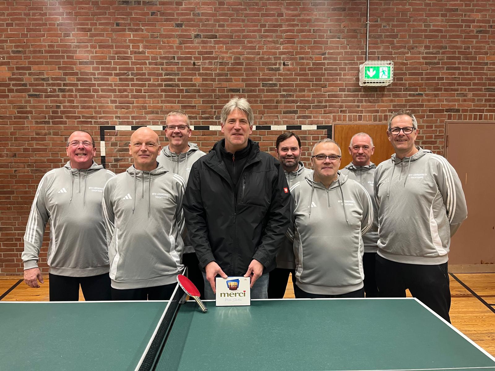 Cuxhaven-Lüdingworth. Unsere Tischtennis-Herren freuen sich über neue Aufwärm-Hoodys. Ein großer Dank geht an Heiko Hentschel von der Tischlerei Hentschel aus Lüdingworth für das Sponsoring. Am Montag erfolgte die Übergabe an einem Trainingsabend an den Abteilungsleiter Torsten Köhne. Danke, Heiko!