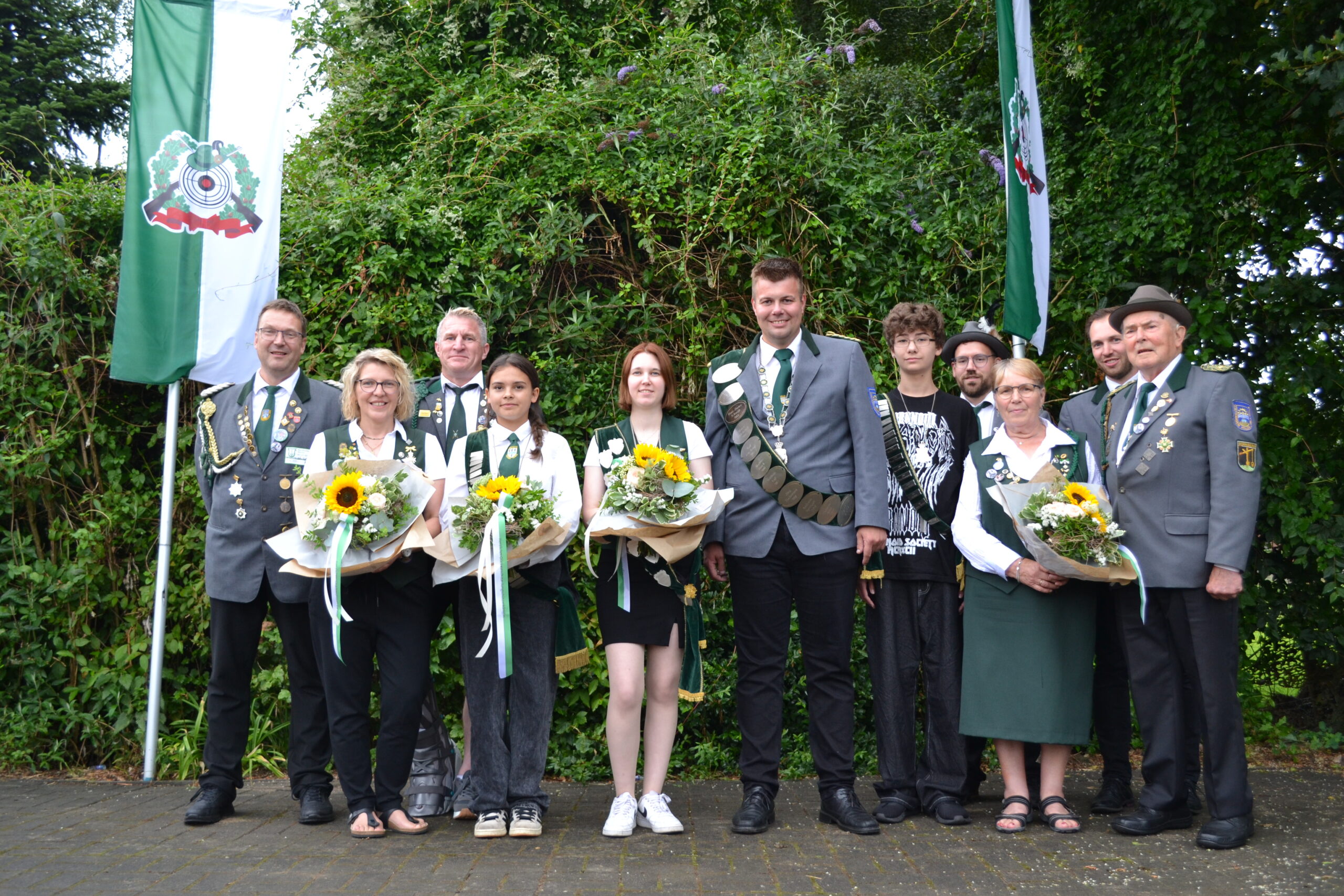 Auch das Abholen des Königspaares Christa und Frank Steffens und des Jungschützenpaares Pia Steffens und Ben Peters und des Kinderkönigs Bradley Daudeij am Sonntag erfreute die Mitglieder und Dorfbewohner und sorgte für eine ausgelassene Stimmung – ein kurzer heftiger Regenguss beim Abholen tat der fröhlichen Stimmung keinen Abbruch. Das Königspaar hatte mit der Scheune und dem Zelt ausreichend Platz für alle geschaffen. Der Nachmittag stand ganz im Zeichen der Schießwettbewerbe, Kinderspiele und eines großartigen Kaffee- und Kuchenbuffets. Nachmittags konnten bereits die Nachwuchsschützen im Alter von 6 – 14 Jahren ihre Preise und Pokale in Empfang nehmen. Auf der Pokalscheibe siegten die Brüder Bennet und Matti Blohm ringgleich vor Bradley Daudeij. Auch die Kinderpreisscheibe war wieder gut frequentiert – hier holten sich Bennet Blohm und Bradley Daudeij den ersten Preis vor Matti Blohm und Janne Hildebrandt. Die Schießwettbewerbe bei den „großen“ wurden ebenfalls wieder hervorragend angenommen, sodass Vorsitzender Ralf von Kamp abends ein fast volles Königshaus proklamieren konnte. Neues Schützenkönigspaar sind Irina Bremer und Julian Springer. Das Seniorenkönigspaar bilden, wie im wahren Leben, Elke und Heinz von Kamp. Die Jungschützen werden in diesem Jahr von Romy Daudeij und die Kinderabteilung vom neuen Kinderkönig Matti Blohm vertreten. Das neue Kaiserpaar bilden Sandra Franetzki und Thomas Söhl. Auf den Medaillenscheiben siegte Gabriele Tiedemann vor Anna-Lena Peters und Kiara Peters, bei den Herren holte sich Bernd Springer vor Dennis Müller und Jörg Tiedemann seine Medaille. Sehr guten Anklang fanden auch die Fischscheibe (Frank Baack vor Inken von Kamp und Wilfried Mahlandt) und die Sachpreisscheibe mit ihren außergewöhnlich guten Preisen. Hier siegte Holger Meyer vor Sandra Franetzki und Frank Steffens. Bilder zur Veranstaltung sind auf der Homepage www.schuetzenverein-hollen.com zu finden.