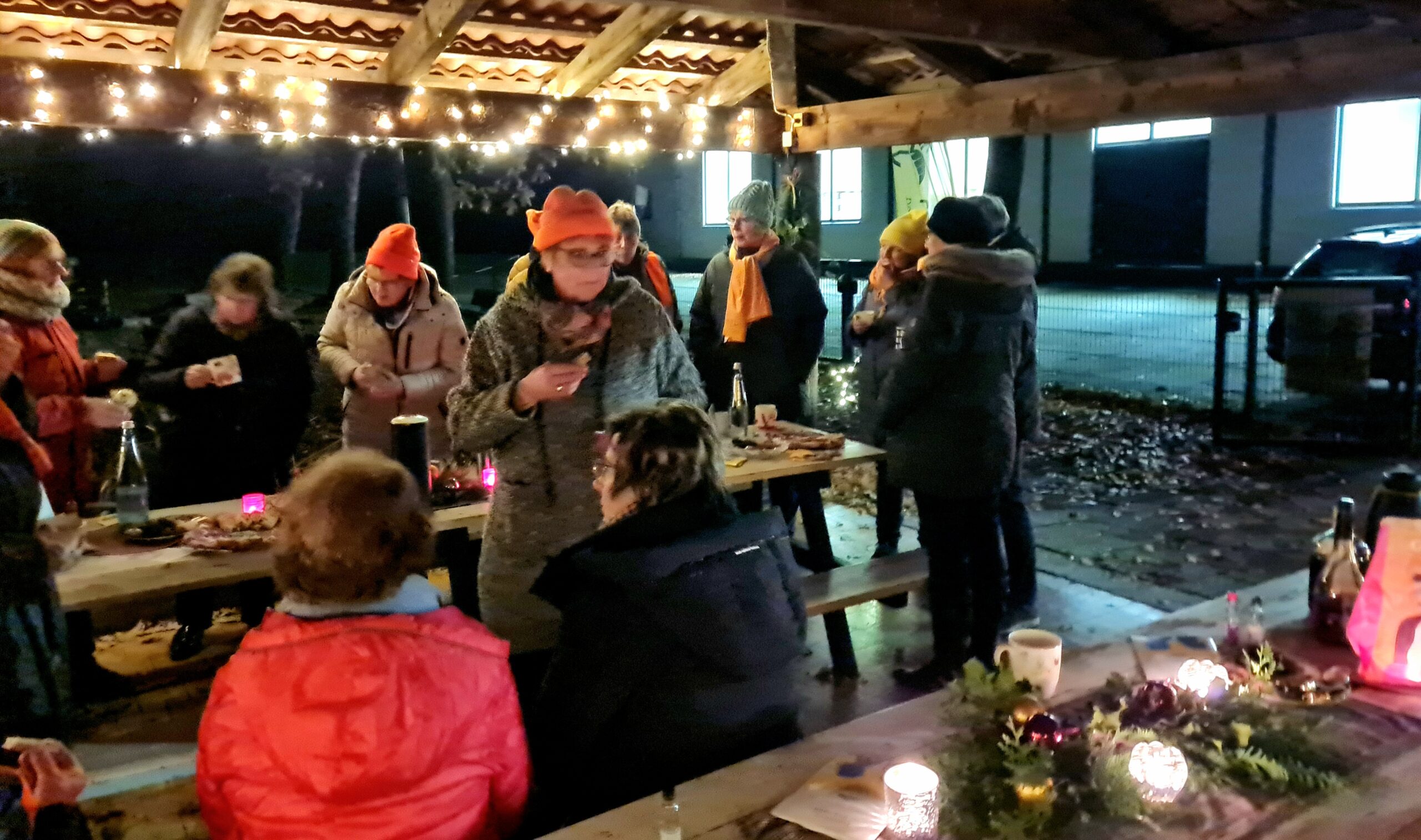 Großenwörden. Zum informativen und geselligen Beisammensein im Pavillon am Sportplatz in Großenwörden luden die Landfrauen des Dorfes am Freitag, 28. November ’25, ein. Claudia Reimers und „ihr Team“ hatten dort in Orange und mit vielen Lichtern geschmückt. Gut 20 Personen – Frauen und ein paar Männer – bekamen eindrücklich die Bedeutung des „Orange Day“ erklärt und Geschenke in Form von Gebäck und Getränken. „Es war eine beglückende und ernste Begegnung und ein schöner Austausch”. Orange Day ist ein internationaler Tag gegen Gewalt an Frauen. Die Farbe Orange symbolisiert dabei eine Zukunft ohne Gewalt gegen Frauen. Sie wurde im Zuge der von den Vereinten Nationen gegründeten Orange-the-World-Kampagne festgelegt.