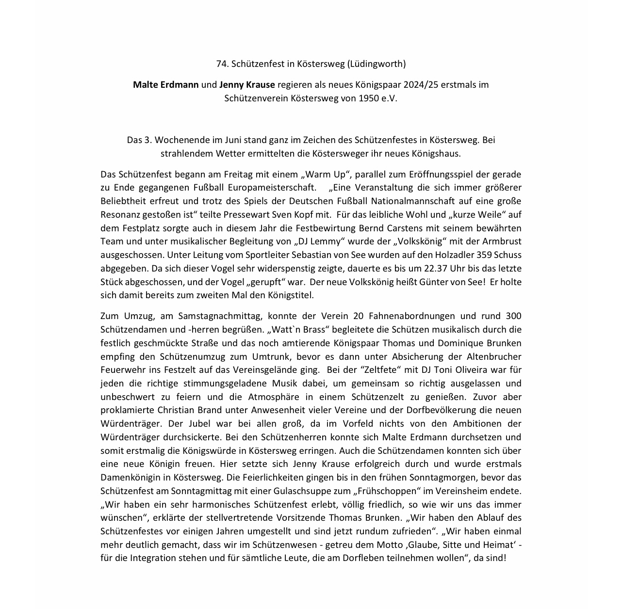 Schützenverein Köstersweg von 1950 e.V.von Schützenverein Köstersweg von 1950 e.V.15. Juli 2024