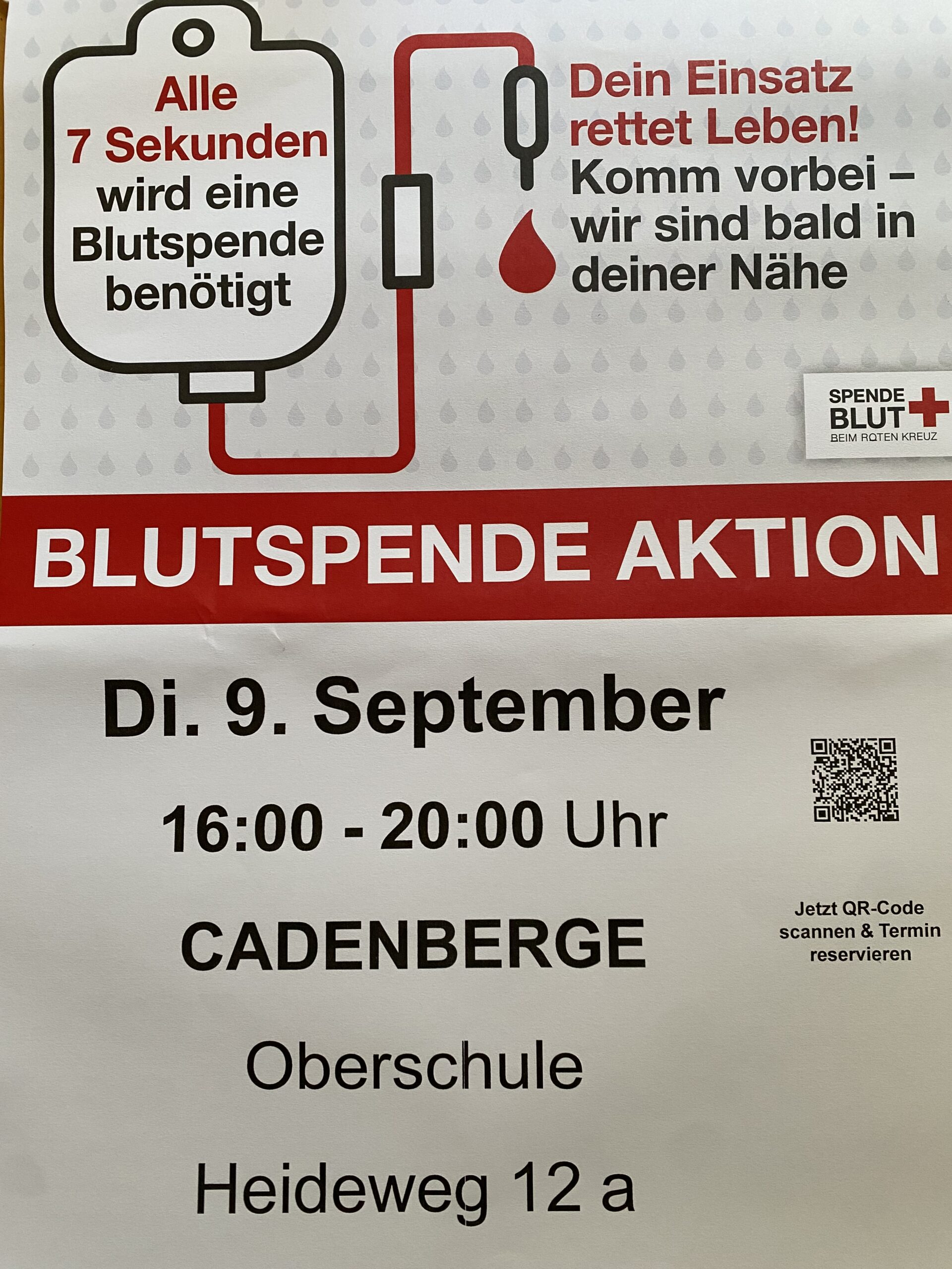 Cadenberge. Der DRK-Ortsverein lädt am Dienstag, 9. September, zur nächsten Blutspende in der Oberschule (Eingang Heideweg) ein. Der Personalausweis und, …