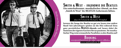 Irgendwie die BEATLES – eine Beatgeschichte mit SMITH & WEST am 7. November Beverstedt. Auf Einladung des Markt- und Kulturvereins …
