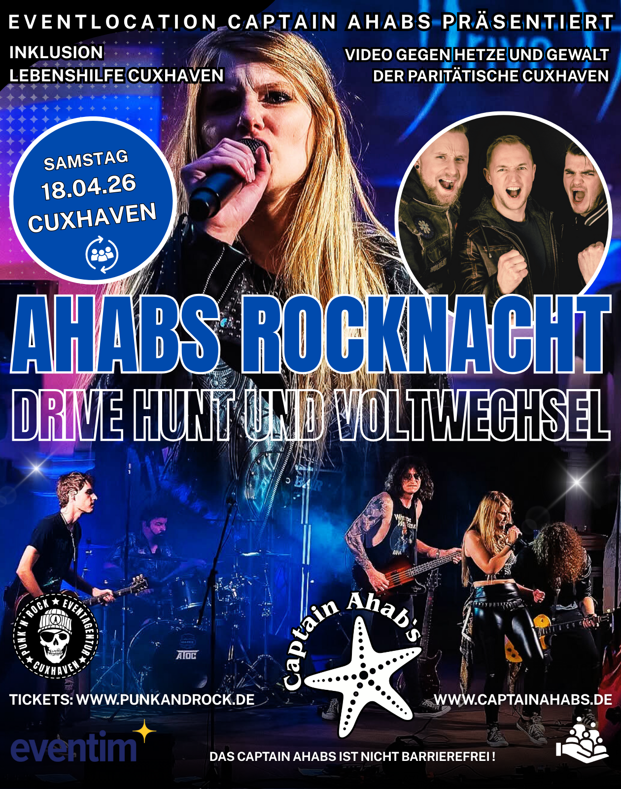 Inklusions-Rock-Konzert – Live im Captain Ahabs Saal am SA 18.04.26 Live: Voltwechsel (A-Graz) und Drive Hunt (Regensburg). Inklusion Lebenshilfe Videopräsentation …