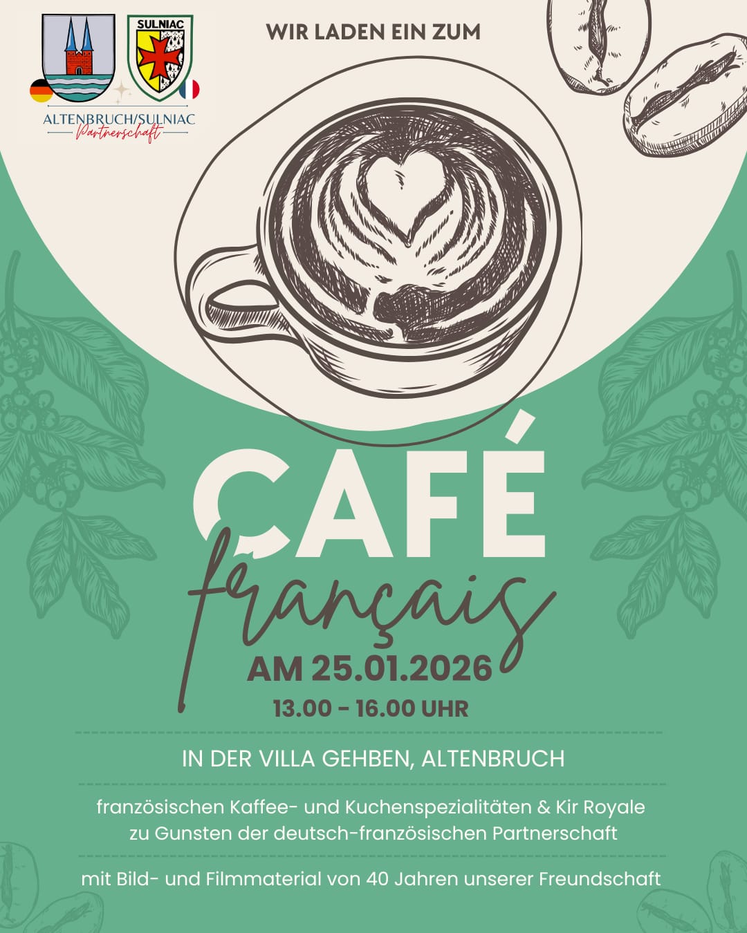 Cuxhaven-Altenbruch. Das Partnerschaftskomitee Altenbruch-Sulniac lädt am 25.01.2026 in die Villa Gehben zum Café francais ein. Genießen sie französische Kaffee- und …