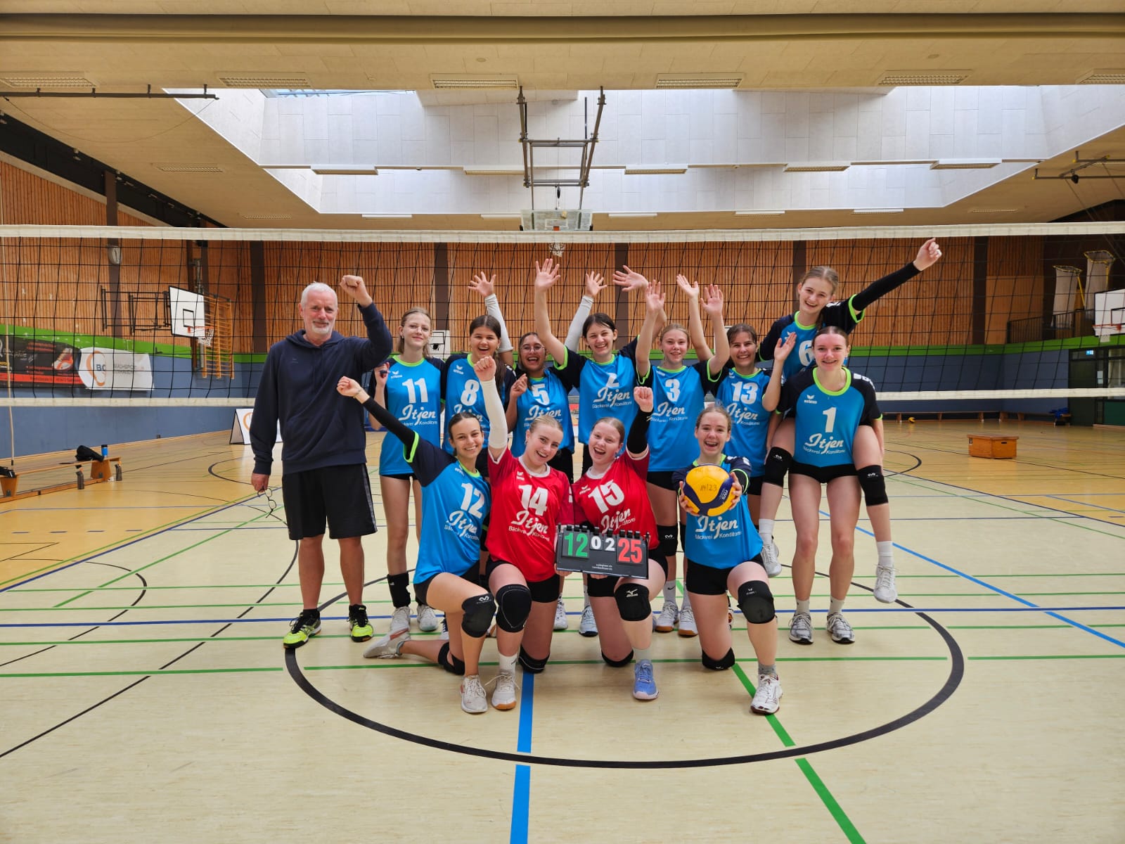 Das starke Aufschlagspiel von Lilly Kühn und Lili Jochimsen waren ausschlaggebend für die schnelle sichere Führung. Eine starke Teamleistung sorgte dann dafür, dass der Satz mit 25:12 an die BCC Jungdamen ging.