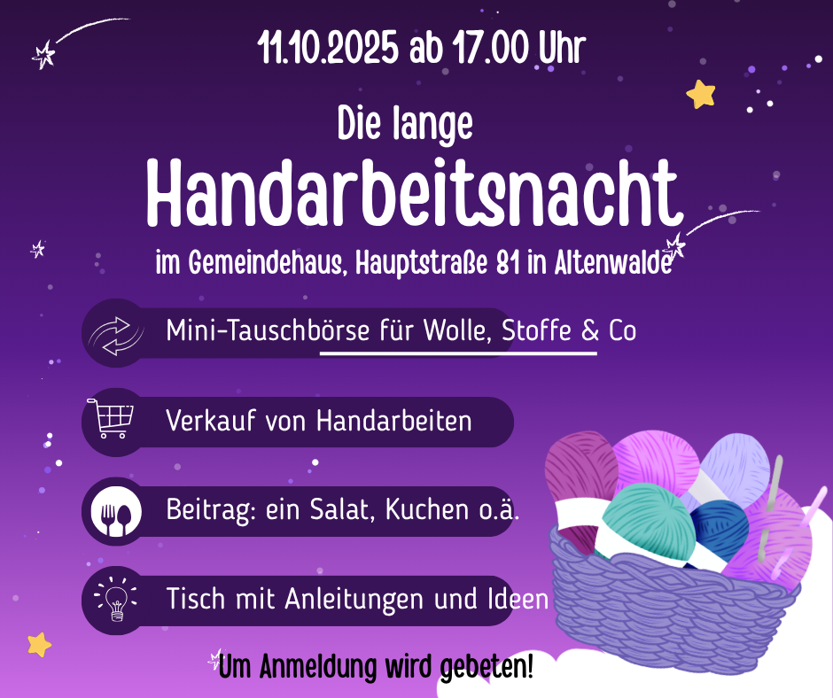 Altenwalde. Das Gemeinwesen-Projekt „Gute Nachbarschaft“ der ev.-luth. Kirchengemeinde Altenwalde lädt am Samstag, den 11. Oktober 2025, ab 17 Uhr zur …