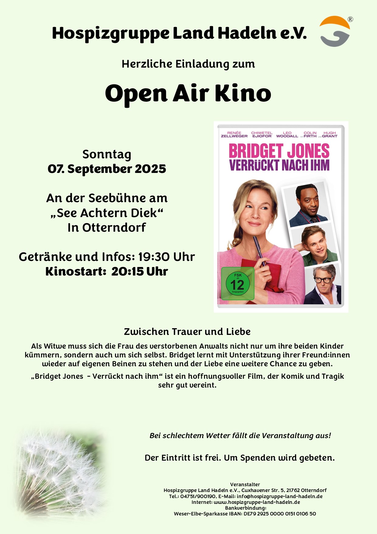 Einladung zum Open-Air-Kino Otterndorf. Die Hospizgruppe Land Hadeln e. V. darf sich auch in diesem Jahr freuen, eine Open-Air Kino …
