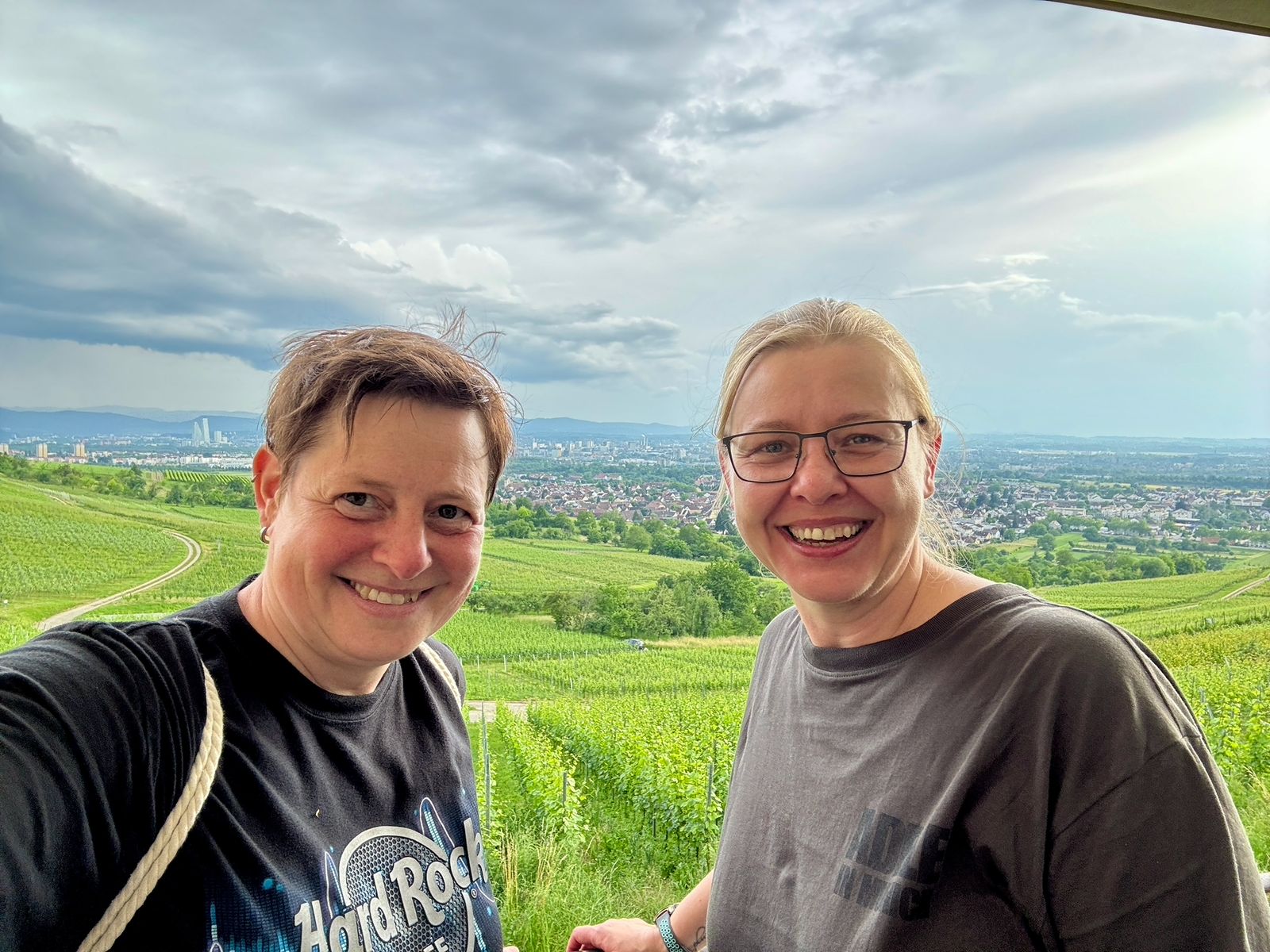Auf Einladung des Vereins machte sich das musikalische Duo „Ebbe & Flut“ aus dem hohen Norden auf den Weg in den Süden. Die Musikerinnen Ulrike Staufenbiel und Britta Quaiser reisten aus Cuxhaven an – nicht mit leeren Händen, sondern mit einer ganz besonderen Gabe: Neben einem musikalischen Gruß überbrachten sie Glückwünsche des Cuxhavener Oberbürgermeisters Uwe Santjer und ein Modell der Kugelbake, dem Wahrzeichen der Nordsee-Stadt.